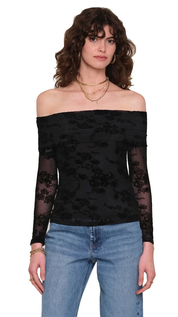 The Tatum Top seamlessly blends contemporary design with versatile styling. This striking piece features an off-the-shoulder silhouette with strapless construction, creating an effortlessly chic neckline. The sheer black floral mesh long sleeves add intricate visual interest while maintaining a sophisticated aesthetic. Perfect for layering or wearing as a statement piece, this top transitions easily from casual outings to evening occasions. The delicate floral pattern against the mesh fabric delivers refined elegance without compromising on comfort or wearability.
