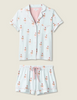 Serving up a sweet treat for your lounge routine, this light blue ice cream printed pajama set turns downtime into pure delight. The set features a short-sleeve top with a playful ice cream graphic and tie-waist shorts accented with a delicate pink trim. A matching headband completes the look for an extra scoop of fun. Crafted from a soft cotton–rayon blend, it’s made for indulging in lazy mornings and dreamy afternoon naps. This style is made in a Women Empowered Factory (At least 51% owned, controlled, or managed by a woman or women).